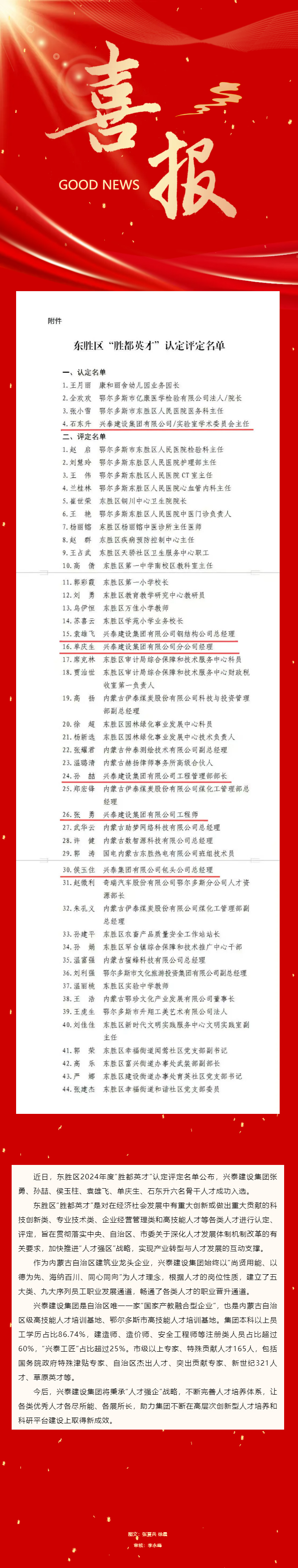 興泰建設集團多名骨干人才獲評“勝都英才”