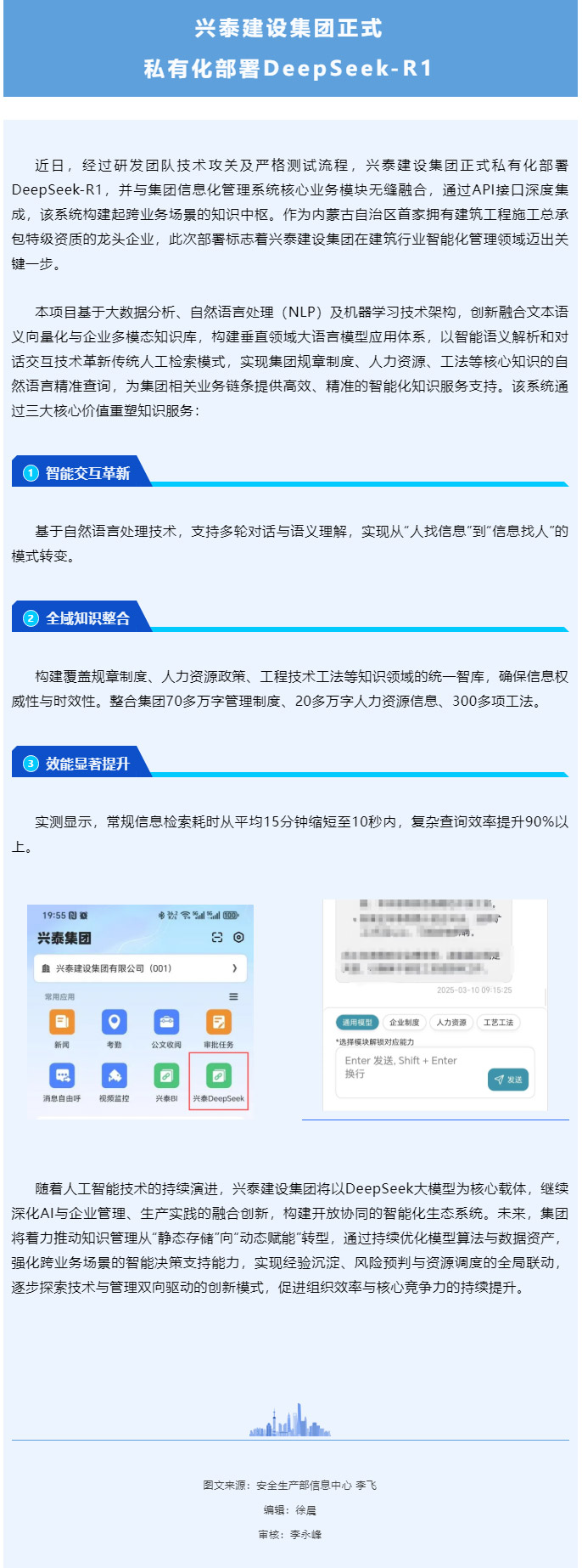 智啟新程|興泰建設集團DeepSeek與業務系統集成賦能企業培育新質生產力
